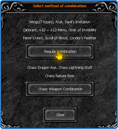 In the Chaos Machine options, you will choose the first combination option called REGULAR COMBINATION. See the example below indicating where you should click: