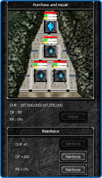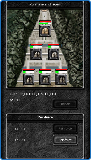 • Reinforce: Upgrade the gate, increasing its defense and durability (an amount of Jewel of Guardian and Zen is charged).