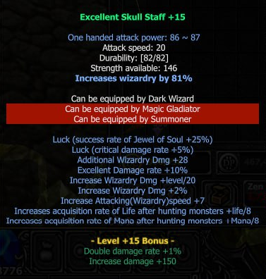 When an item from the sets/weapons category successfully evolves to +15, a bonus with two additional options will be automatically activated by the system. However, items from the wings/cape/rings/pendants categories will have a random option drawing system, but with similar functionality.
