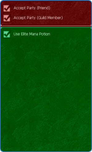 - Accept Party (Guild Member): This option will automatically accept all party requests from your guild members.