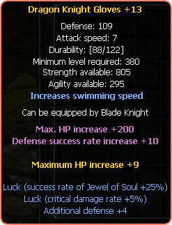 - Dragon Knight: It is the item dedicated to the Blade Knight class, it accompanies a powerful sword called the
