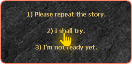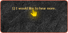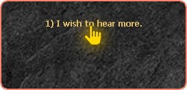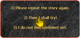 After clicking on the NPC Marlon, it will tell you a story about a legendary treasure lost on the continent of Devilz. To advance the story and continue the quest, just choose the options demarcated below: