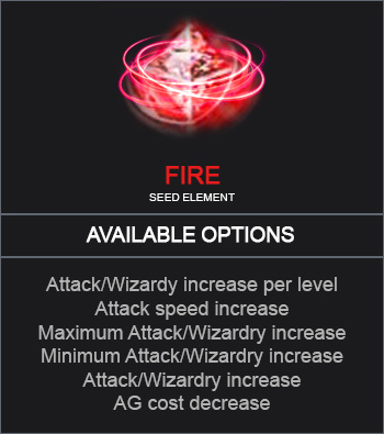 | SLOT1: Fire SLOT2: Lightning SLOT3: Ice Attack power increase +11SLOT1: Lightning SLOT2: Ice SLOT3: Fire Skill attack increase +11 | SLOT1: Fire SLOT2: Lightning SLOT3: Ice Attack/Wizardry increase +5SLOT1: Lightning SLOT2: Ice SLOT3: Fire Skill attack increase +11 | SLOT1: Water SLOT2: Earth SLOT3: Wind Defense increase +24SLOT1: Earth SLOT2: Wind SLOT3: Water Maximum HP increase +29 |